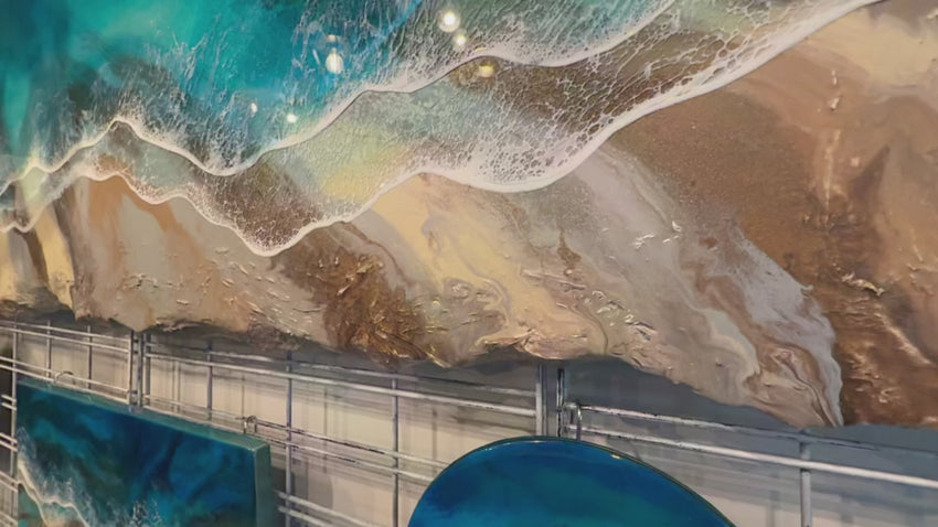 Introducing Strands - a relaxing addition to your home decor. Measuring 24”x72”, this resin wave art is layered on top of faux stone for a textured, 3D effect. The lightweight foam canvas makes installation a breeze. Transform any space into a peaceful oasis with Strands.